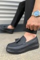 JY154 Blaze Bağcıksız Püsküllü Cilt Erkek Günlük Spor Klasik Ayakkabı CST - Siyah