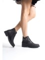 ALMILA Fermuarlı Lastikli Ortopedik Taban Topuklu Kadın Bot CST - Siyah