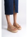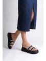 ELISE Düz Topuklu Şeritli Taşlı Kalın ve Ortopedik Taban Kadın Terlik CBT - Beyaz