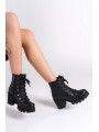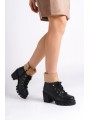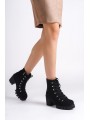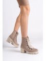 EMMA Bağcıklı Fermuarlı Ortopedik Taban Topuklu Süet Kadın Bot STT - Ten
