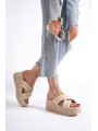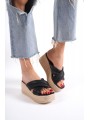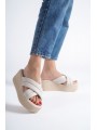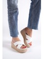 JOYMIX Dolgu Topuklu Ortopedik Taban Hasır Görünümlü Kadın Terlik CKT - Beyaz