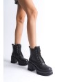LAUREN Bağcıklı Fermuarlı Ortopedik Taban Topuklu Kadın Bot CST - Siyah