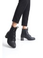 LENA Bağcıklı Fermuarlı Ortopedik Taban Topuklu Kadın Bot CST - Siyah