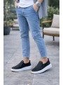 WG049 Erkek Günlük Bağcıksız Cilt Spor Sneaker Ayakkabı CBT - Siyah